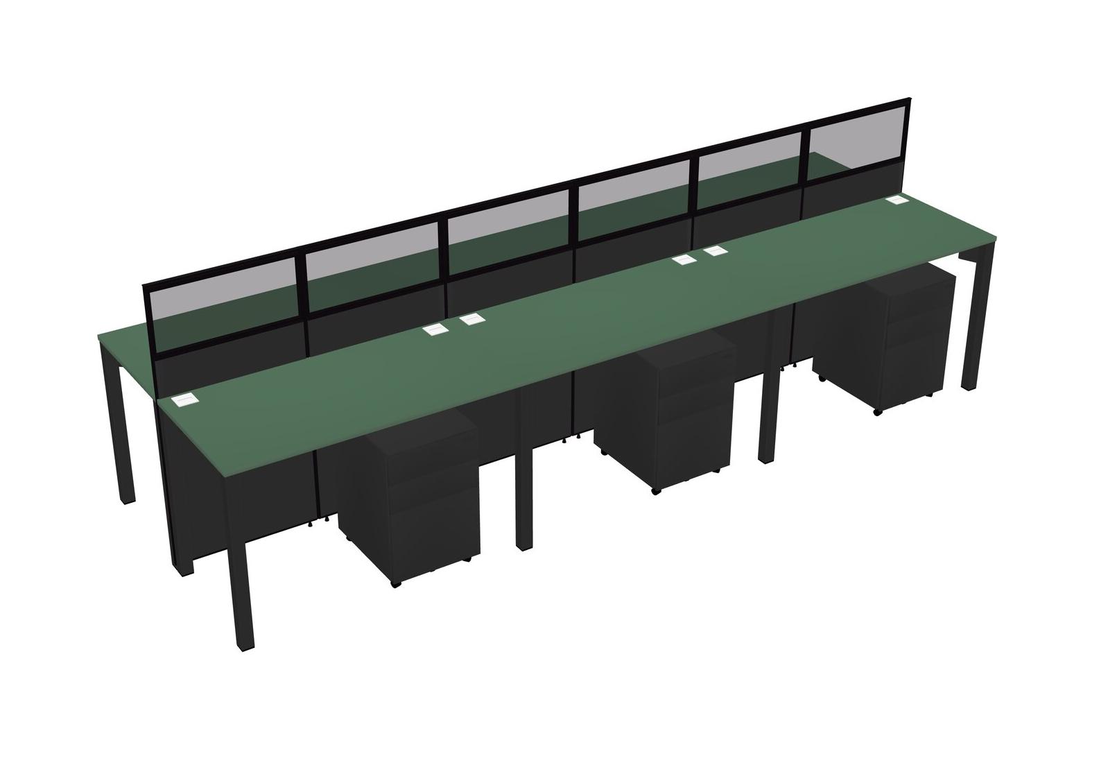 Green Shared Rectangular Office Cubicle Panel System With Mobile Drawers For 6 Persons