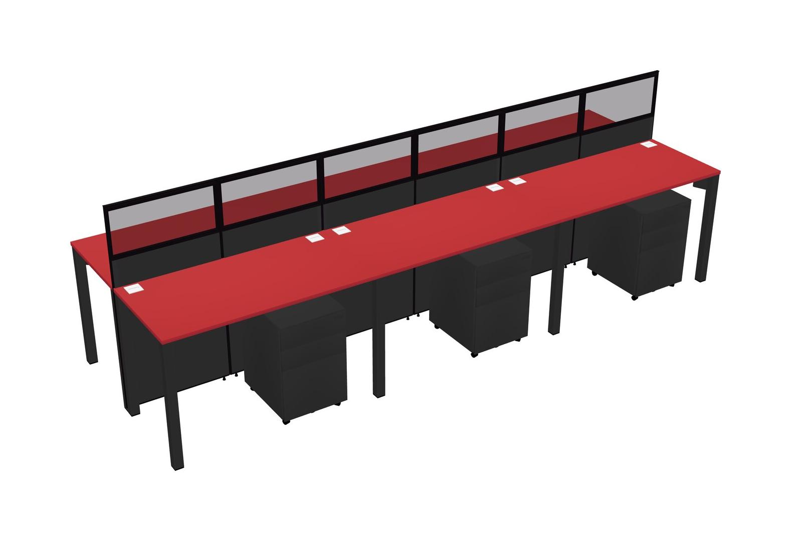 Prism Red Shared Rectangular Office Cubicle Panel System With Mobile Drawers For 6 Persons