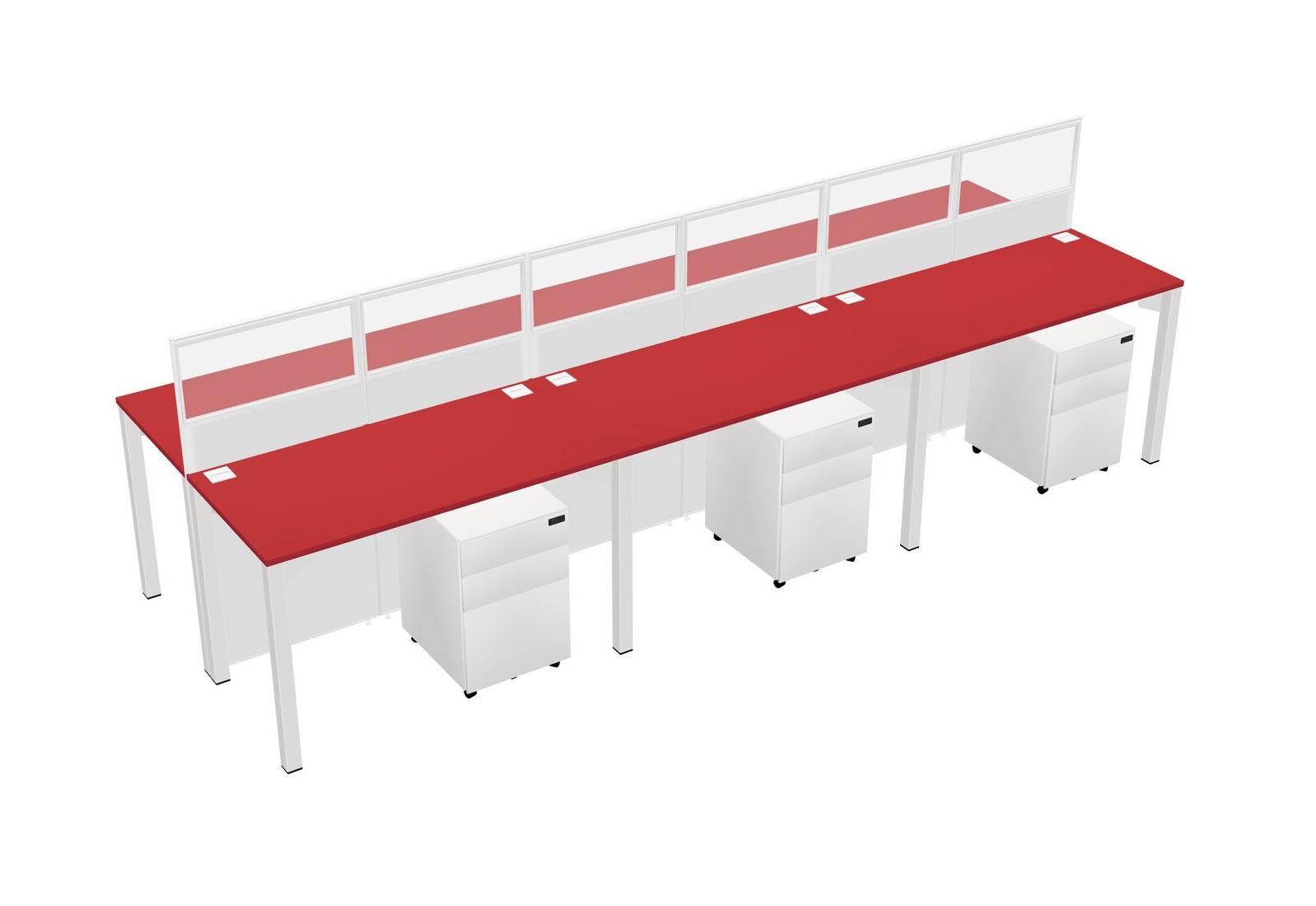 Prism Red Shared Rectangular Office Cubicle Panel System With Mobile Drawers For 6 Persons