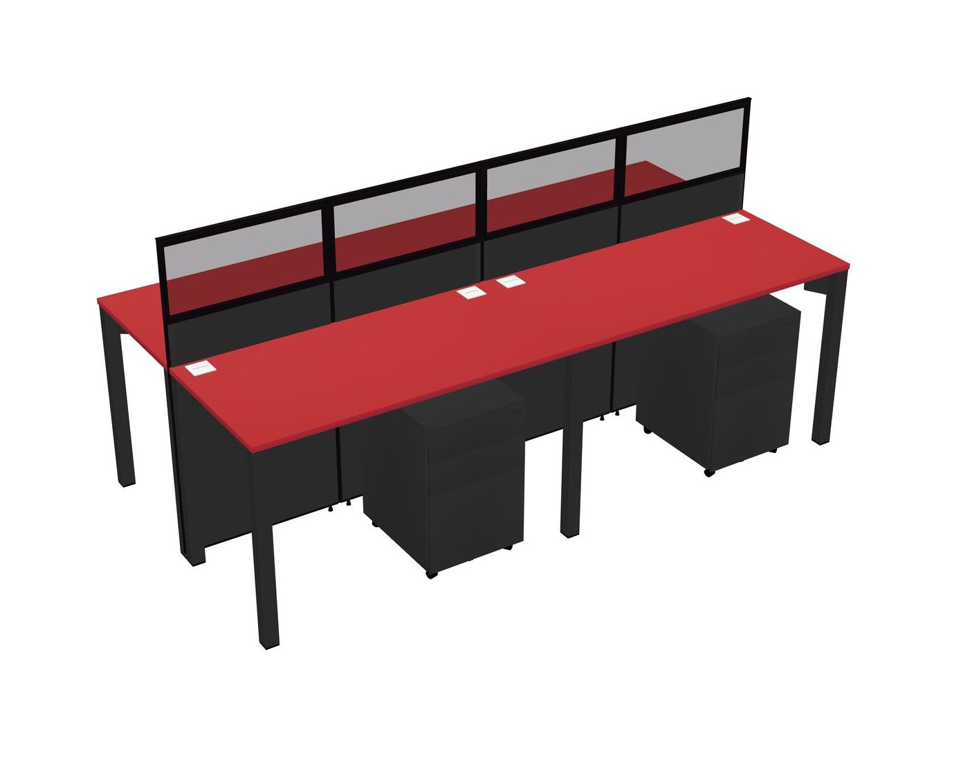 Prism Red Shared Rectangular Office Cubicle Panel System With Mobile Drawers For 4 Persons