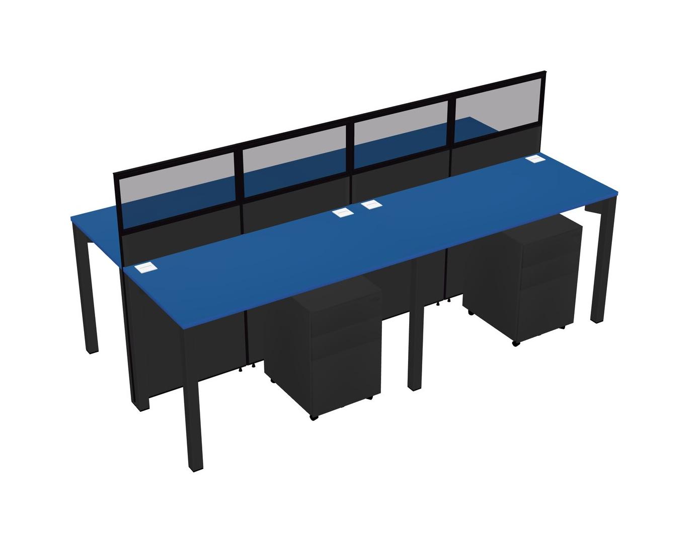 Prism Blue Shared Rectangular Office Cubicle Panel System With Mobile Drawers For 4 Persons