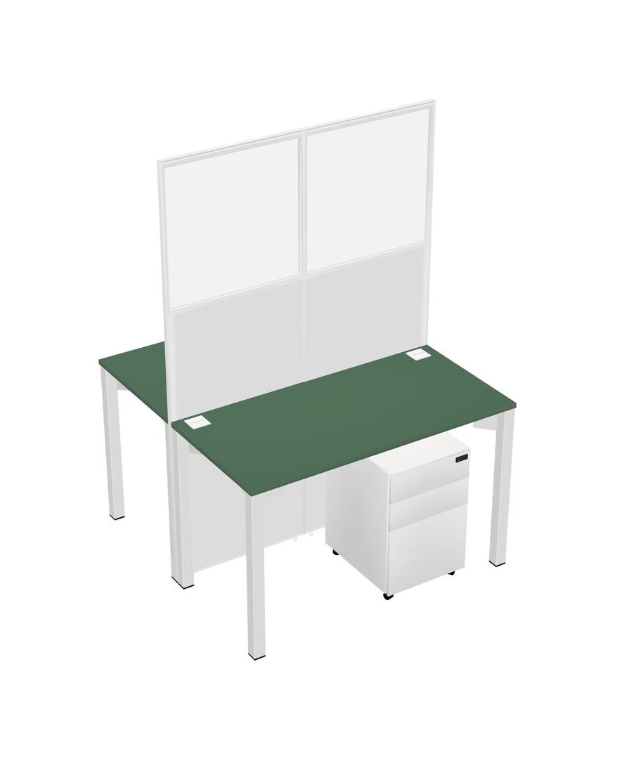 Green Shared Rectangular Office Cubicle Panel System With Mobile Drawers For 2 Persons