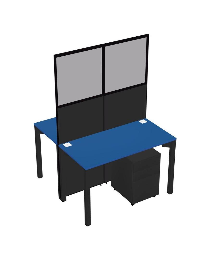 Prism Blue Shared Rectangular Office Cubicle Panel System With Mobile Drawers For 2 Persons