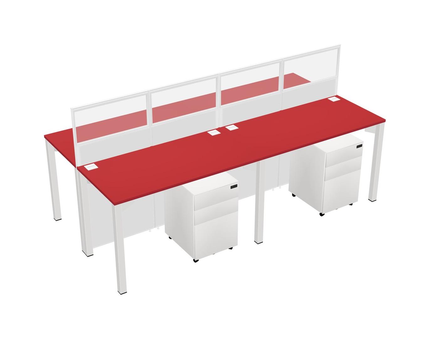 Prism Red Shared Rectangular Office Cubicle Panel System With Mobile Drawers For 4 Persons