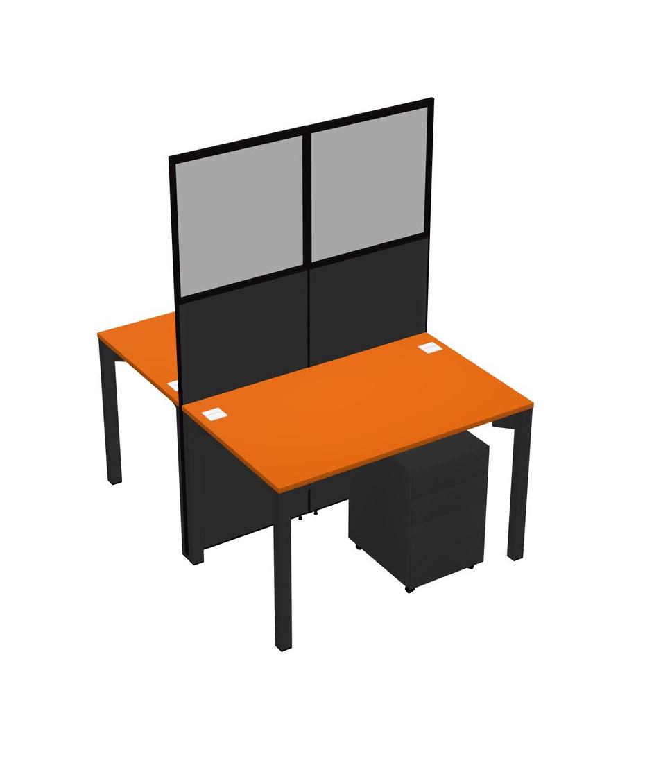 Orange Shared Rectangular Office Cubicle Panel System With Mobile Drawers For 2 Persons