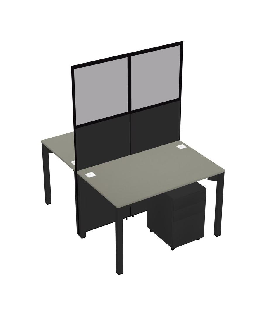Grey Shadows Shared Rectangular Office Cubicle Panel System With Mobile Drawers For 2 Persons