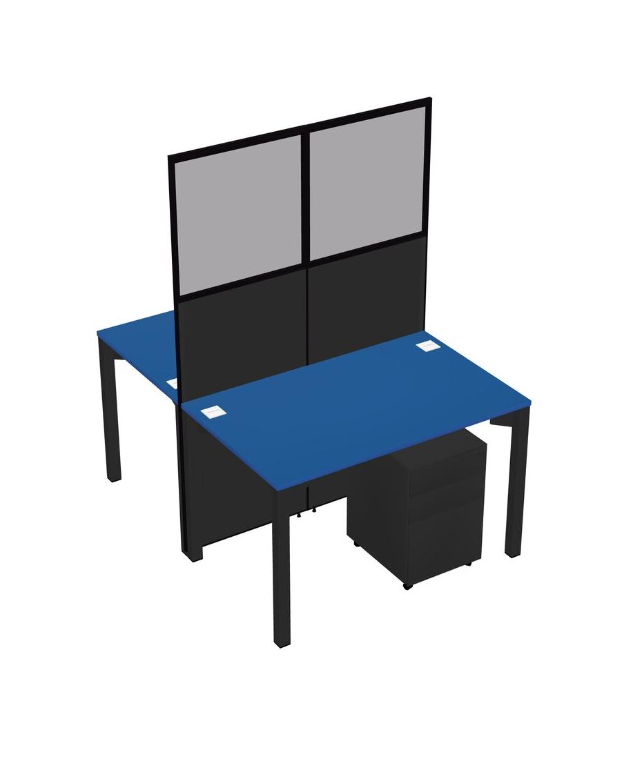 Prism Blue Shared Rectangular Office Cubicle Panel System With Mobile Drawers For 2 Persons
