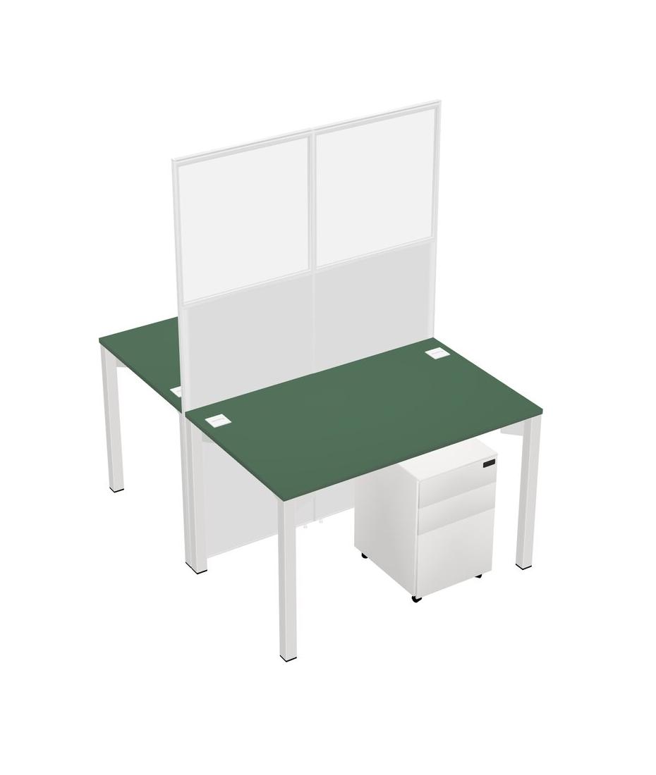 Green Shared Rectangular Office Cubicle Panel System With Mobile Drawers For 2 Persons