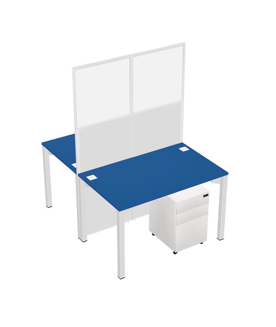 Prism Blue Shared Rectangular Office Cubicle Panel System With Mobile Drawers For 2 Persons