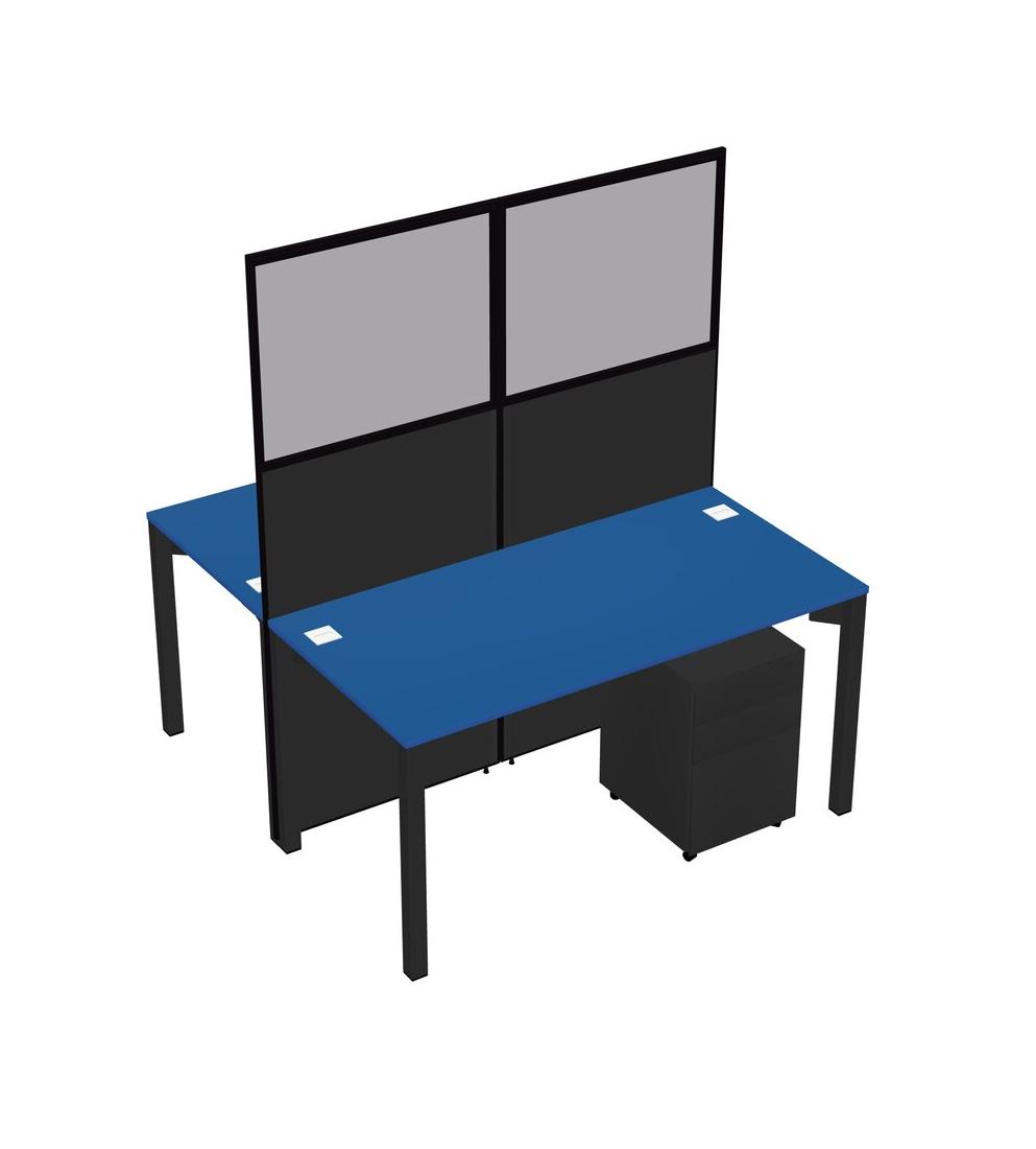 Prism Blue Shared Rectangular Office Cubicle Panel System With Mobile Drawers For 2 Persons