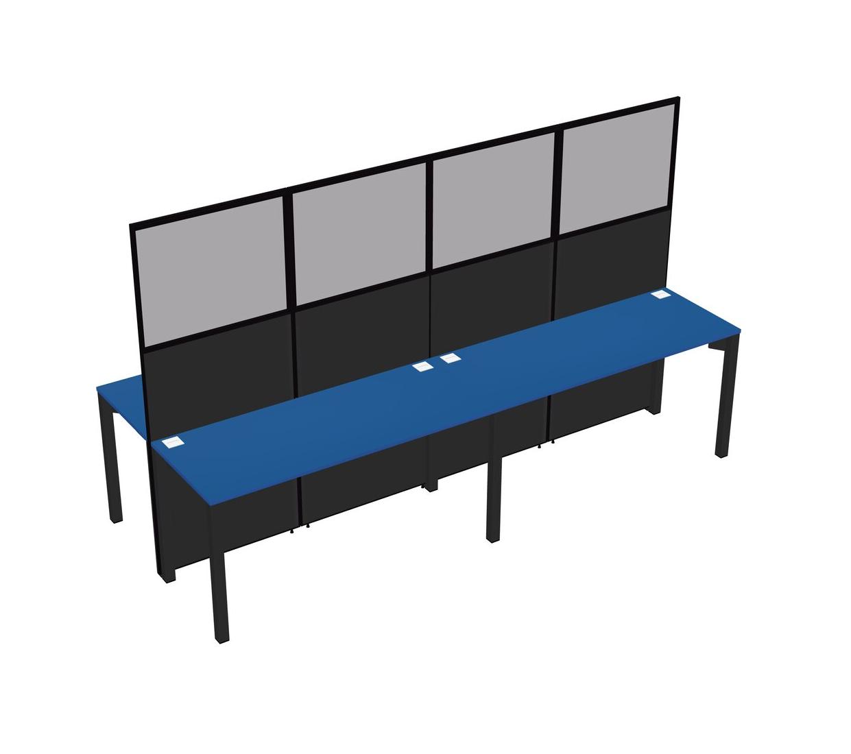 Prism Blue Shared Rectangular Office Cubicle Panel System For 4 Persons