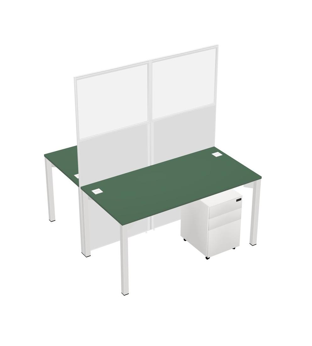 Green Shared Rectangular Office Cubicle Panel System With Mobile Drawers For 2 Persons