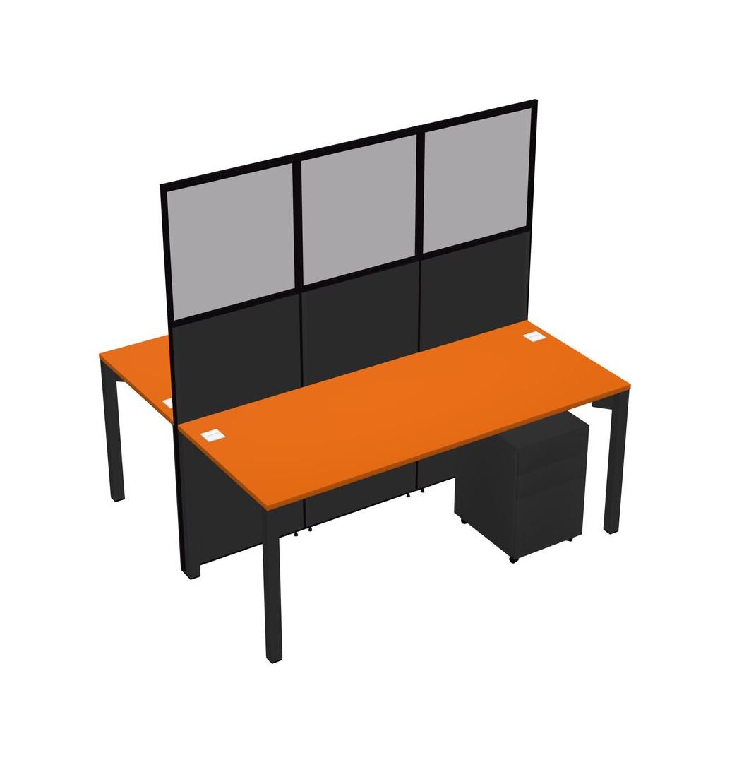 Orange Shared Rectangular Office Cubicle Panel System With Mobile Drawers For 2 Persons