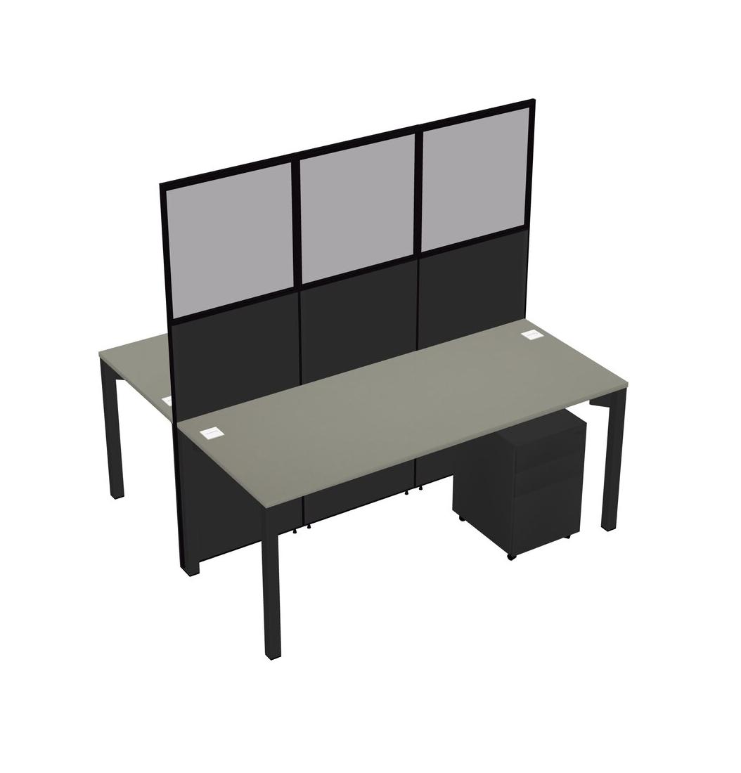 Grey Shadows Shared Rectangular Office Cubicle Panel System With Mobile Drawers For 2 Persons