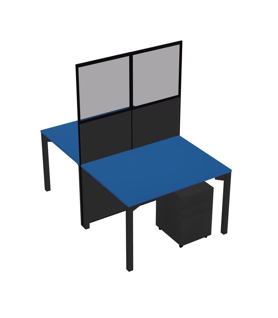 Prism Blue Shared Rectangular Office Cubicle Panel System With Mobile Drawers For 2 Persons