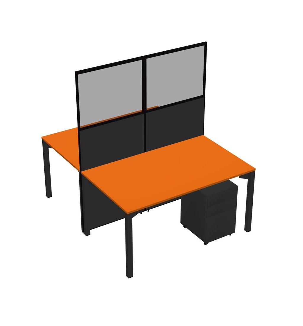 Orange Shared Rectangular Office Cubicle Panel System With Mobile Drawers For 2 Persons