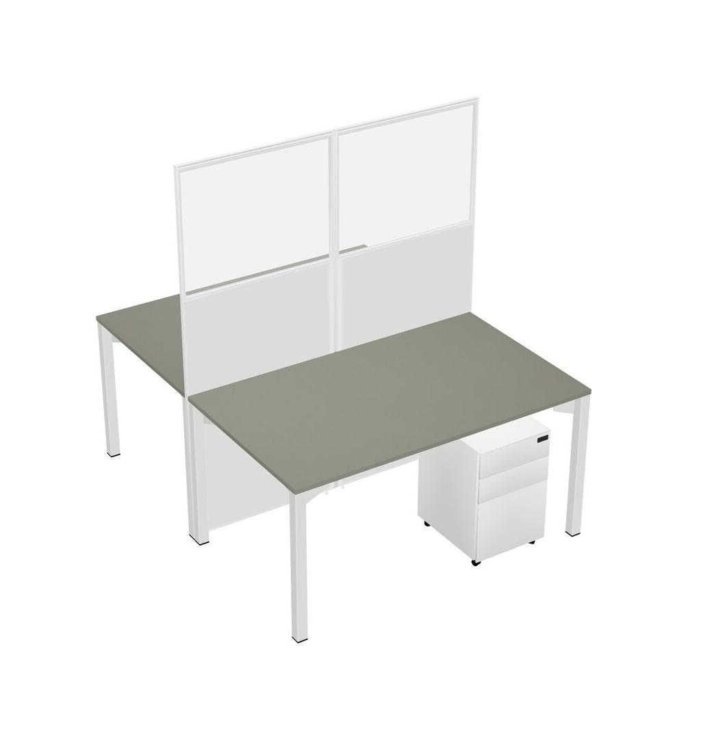 Grey Shadows Shared Rectangular Office Cubicle Panel System With Mobile Drawers For 2 Persons