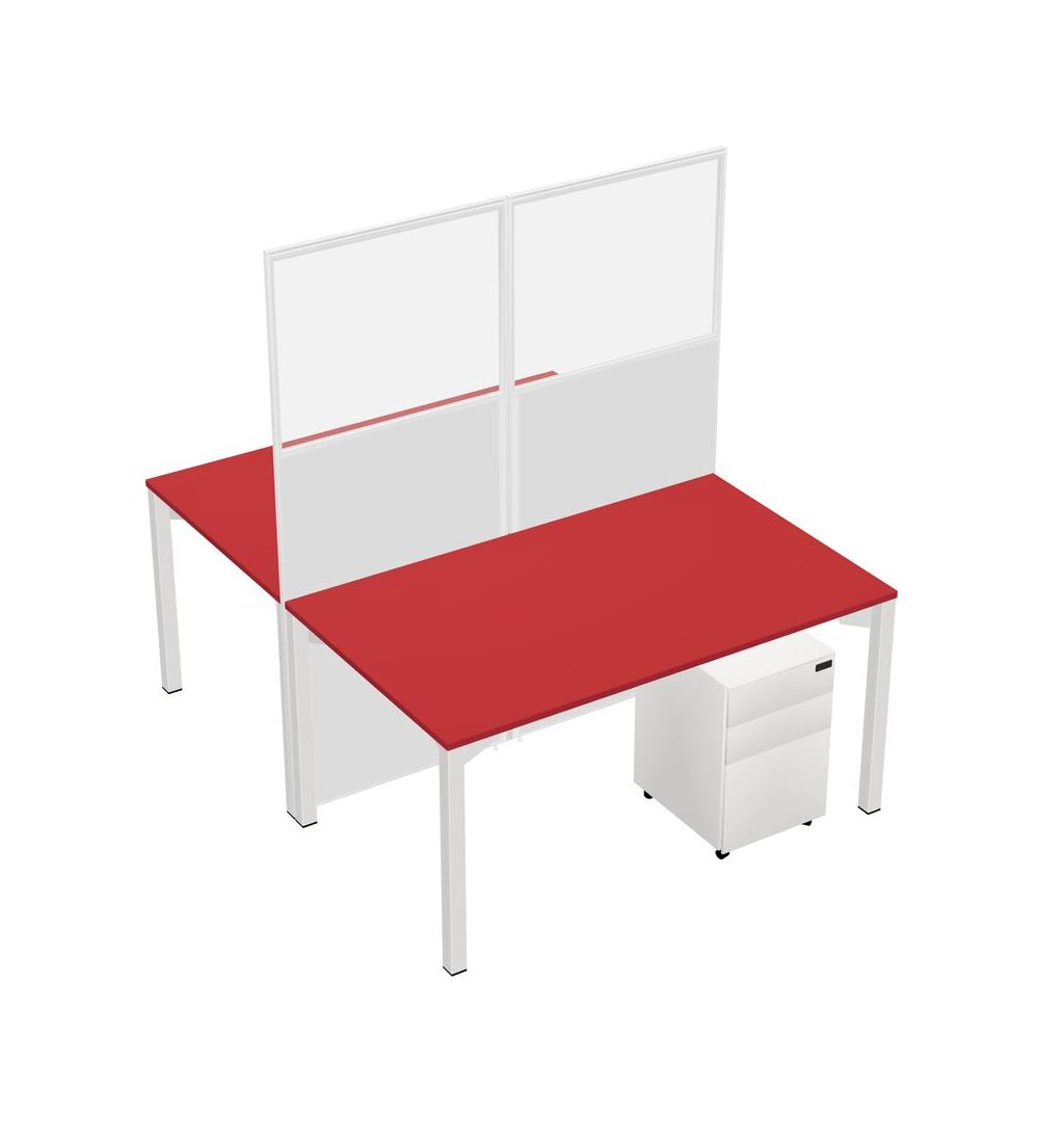 Prism Red Shared Rectangular Office Cubicle Panel System With Mobile Drawers For 2 Persons