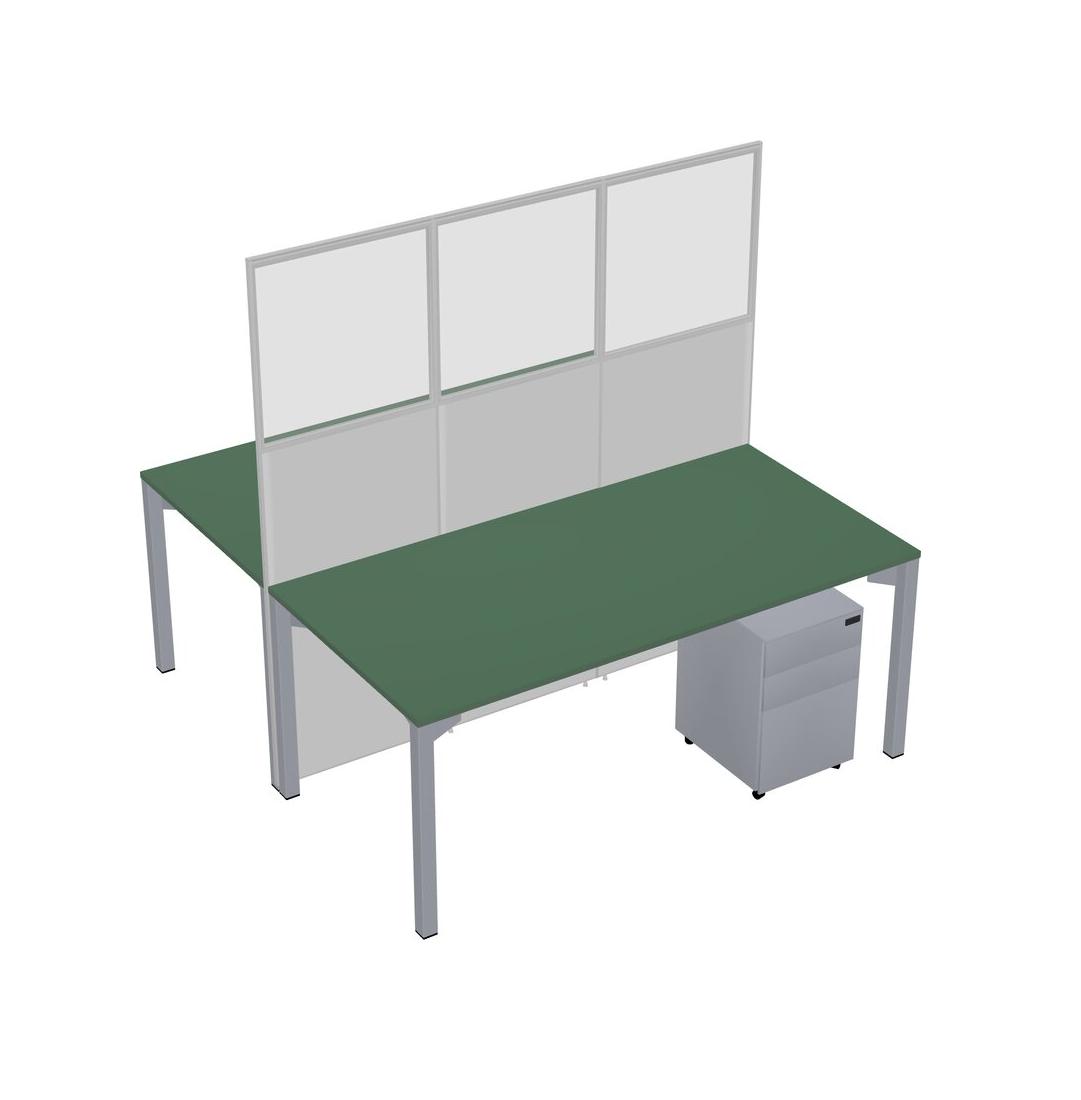 Green Shared Rectangular Office Cubicle Panel System With Mobile Drawers For 2 Persons