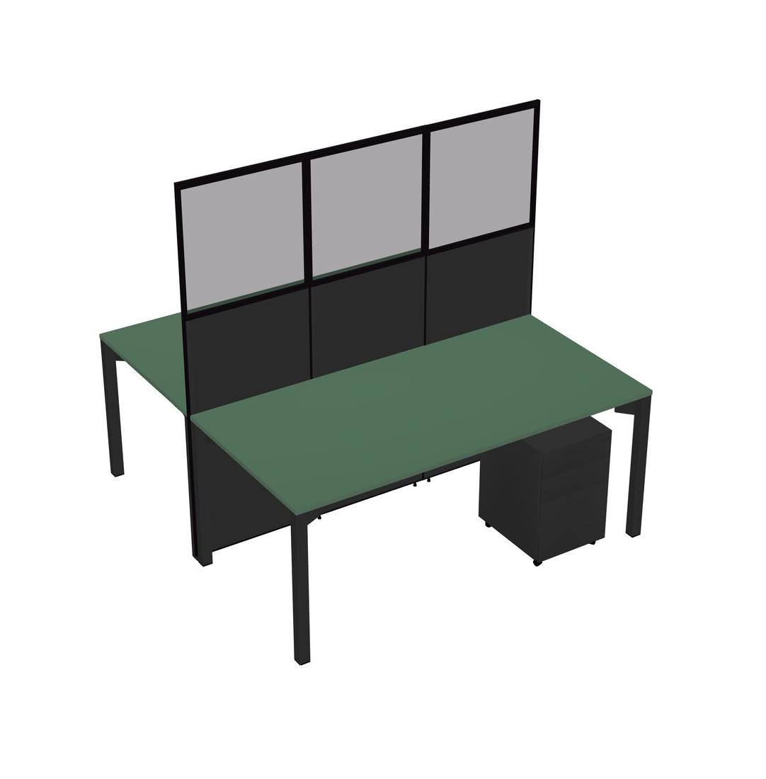 Green Shared Rectangular Office Cubicle Panel System With Mobile Drawers For 2 Persons