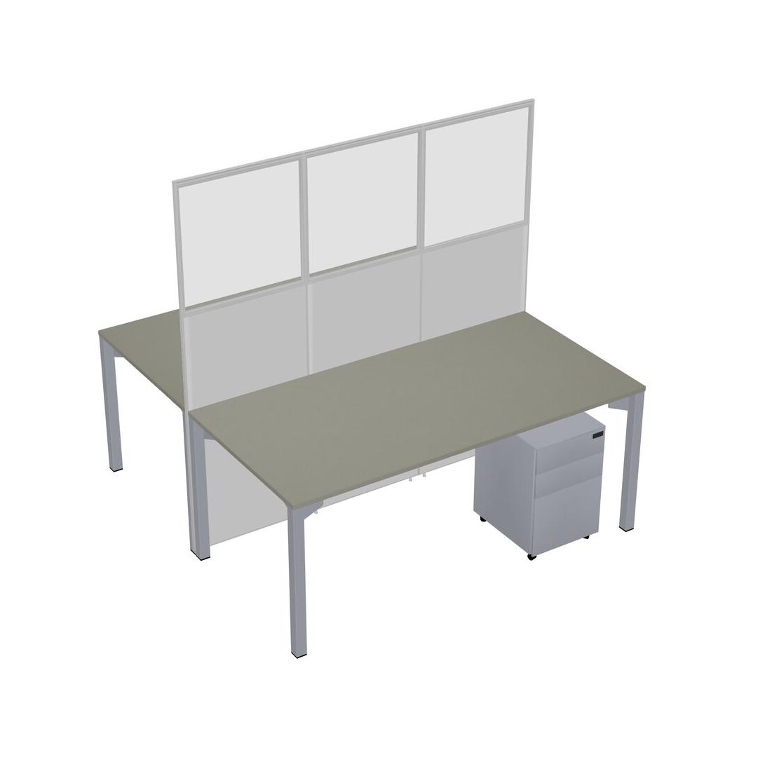 Grey Shadows Shared Rectangular Office Cubicle Panel System With Mobile Drawers For 2 Persons