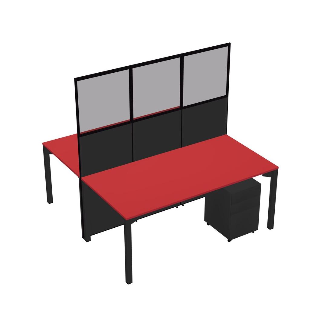 Prism Red Shared Rectangular Office Cubicle Panel System With Mobile Drawers For 2 Persons