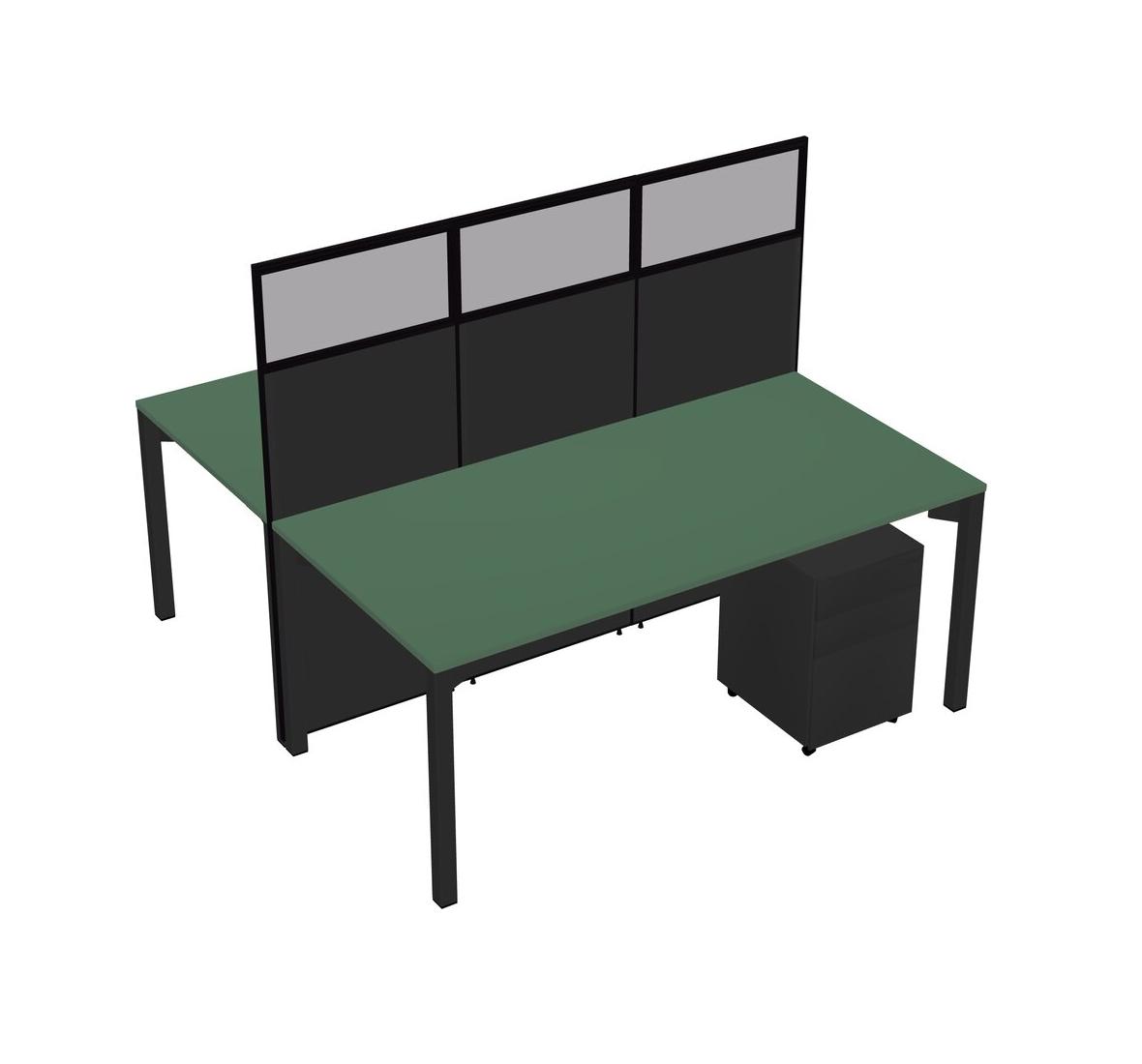 Green Shared Rectangular Office Cubicle Panel System With Mobile Drawers For 2 Persons