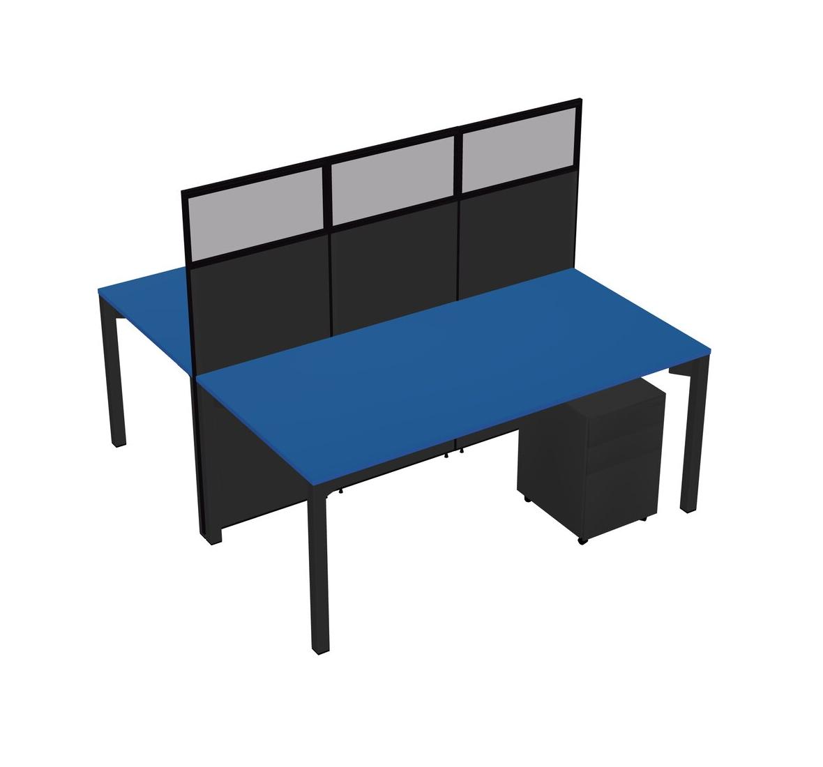 Prism Blue Shared Rectangular Office Cubicle Panel System With Mobile Drawers For 2 Persons