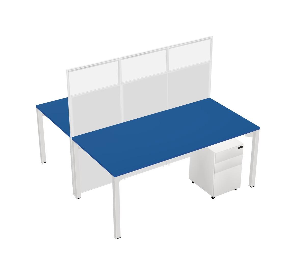 Prism Blue Shared Rectangular Office Cubicle Panel System With Mobile Drawers For 2 Persons