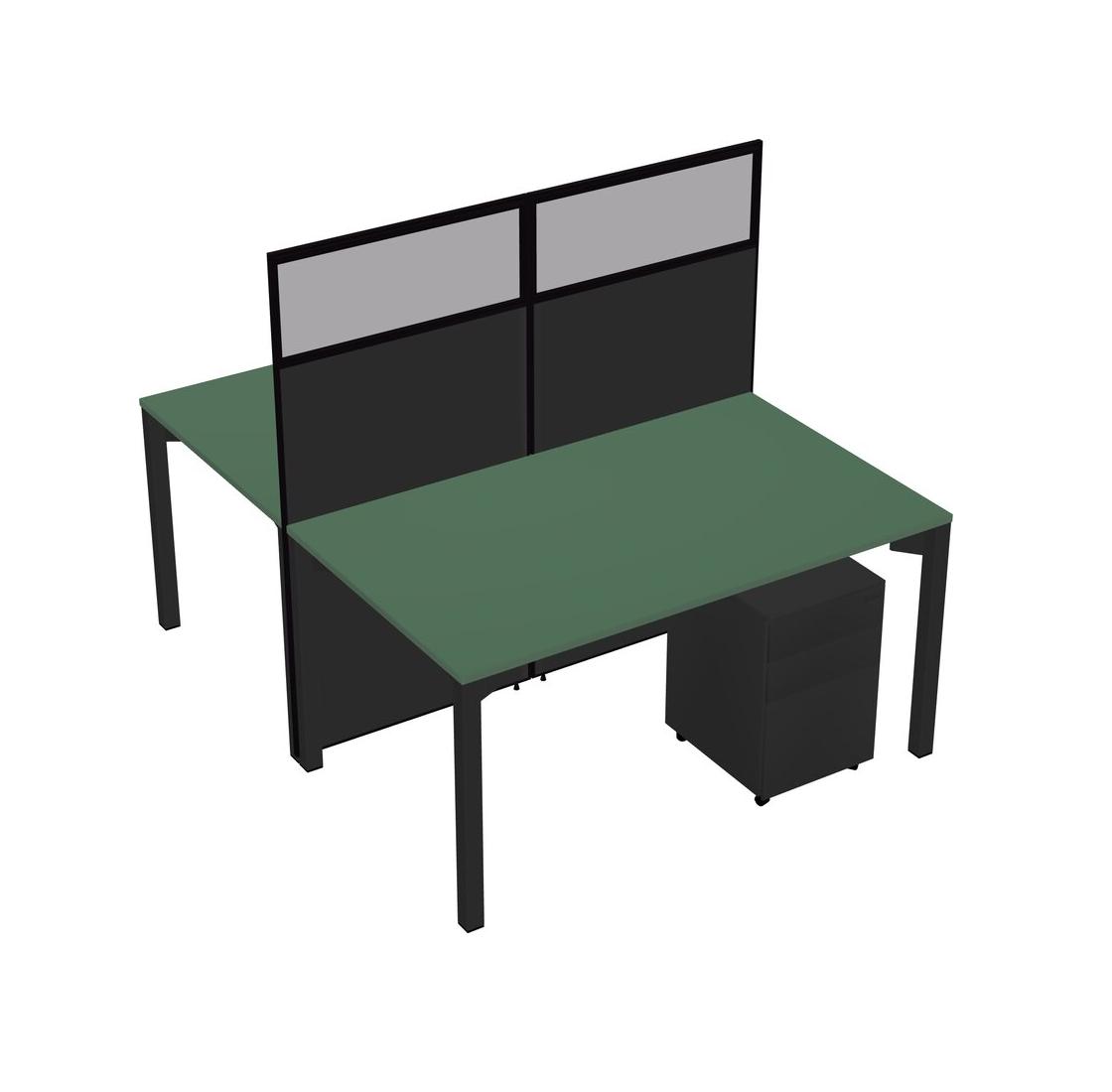 Green Shared Rectangular Office Cubicle Panel System With Mobile Drawers For 2 Persons
