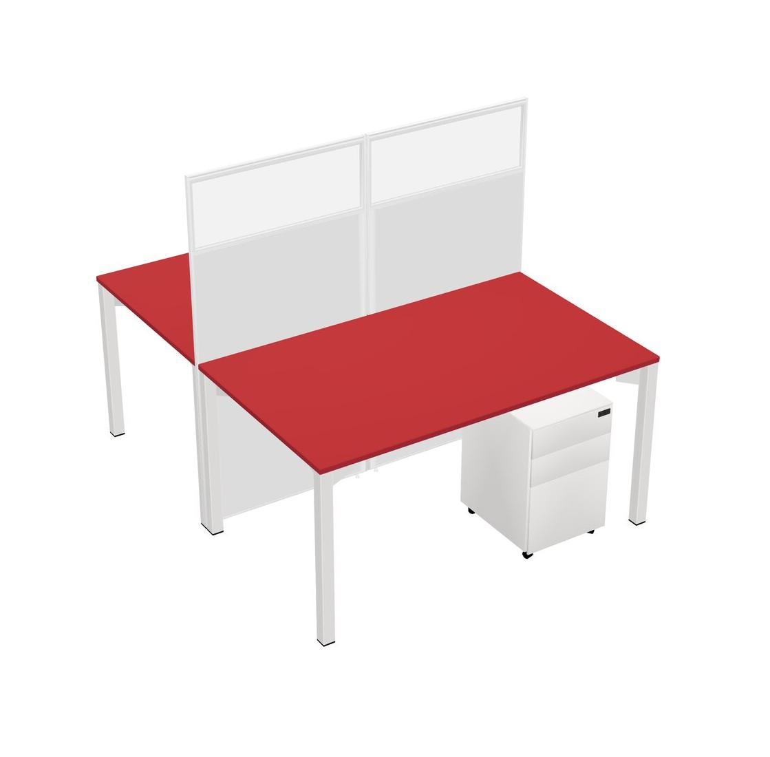 Prism Red Shared Rectangular Office Cubicle Panel System With Mobile Drawers For 2 Persons