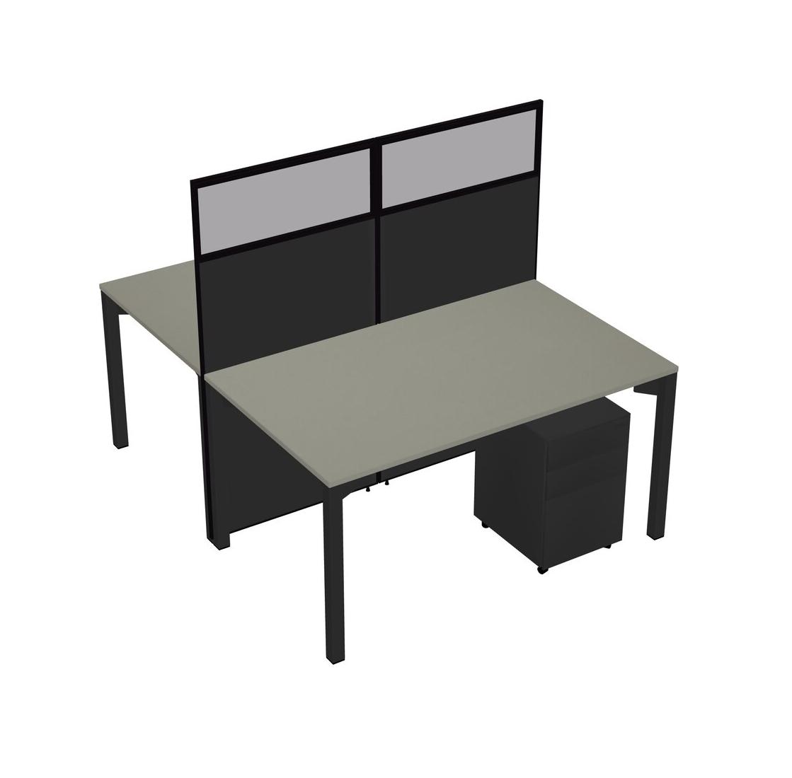 Grey Shadows Shared Rectangular Office Cubicle Panel System With Mobile Drawers For 2 Persons