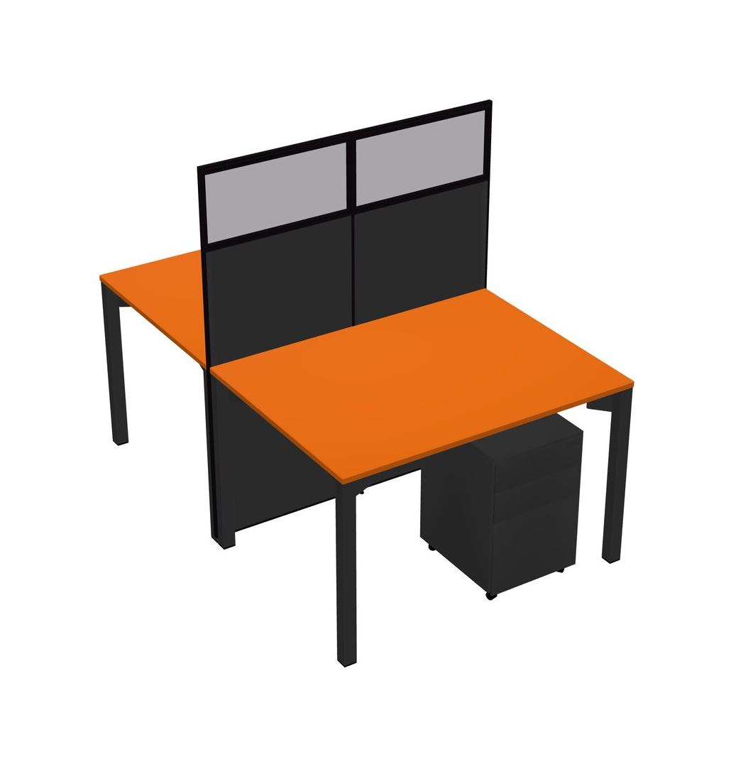 Orange Shared Rectangular Office Cubicle Panel System With Mobile Drawers For 2 Persons