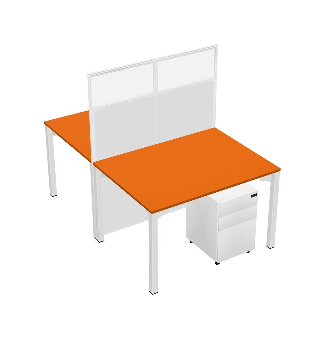 Orange Shared Rectangular Office Cubicle Panel System With Mobile Drawers For 2 Persons