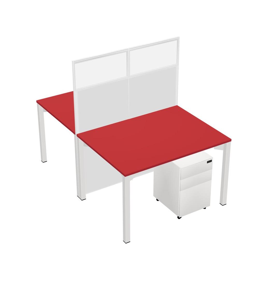 Prism Red Shared Rectangular Office Cubicle Panel System With Mobile Drawers For 2 Persons