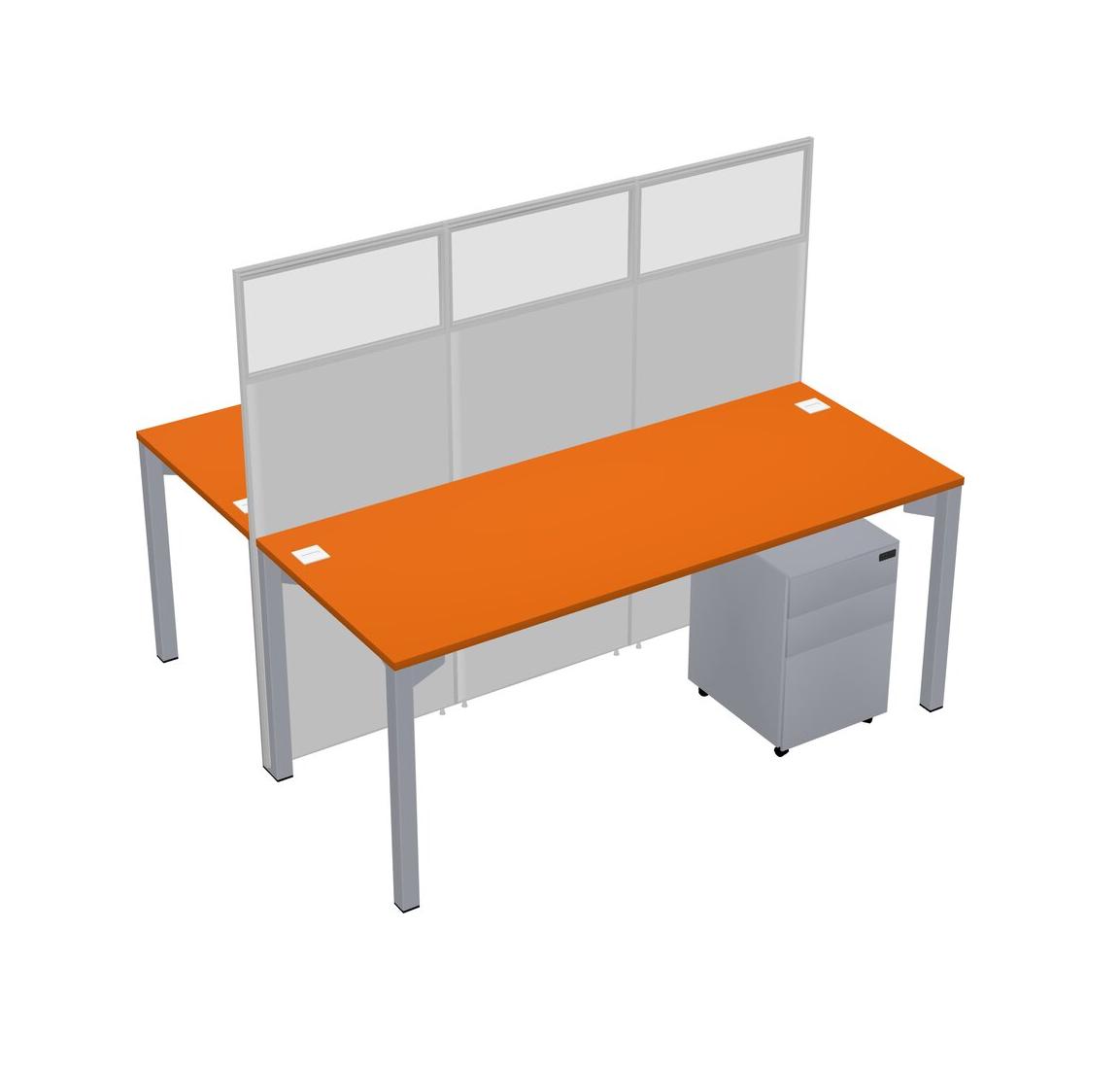 Orange Shared Rectangular Office Cubicle Panel System With Mobile Drawers For 2 Persons