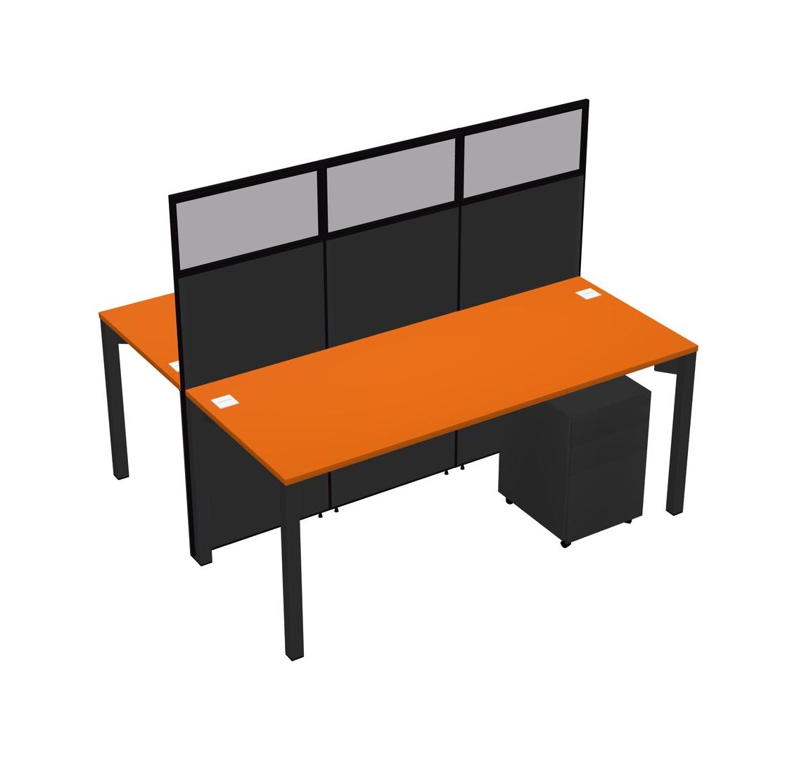 Orange Shared Rectangular Office Cubicle Panel System With Mobile Drawers For 2 Persons