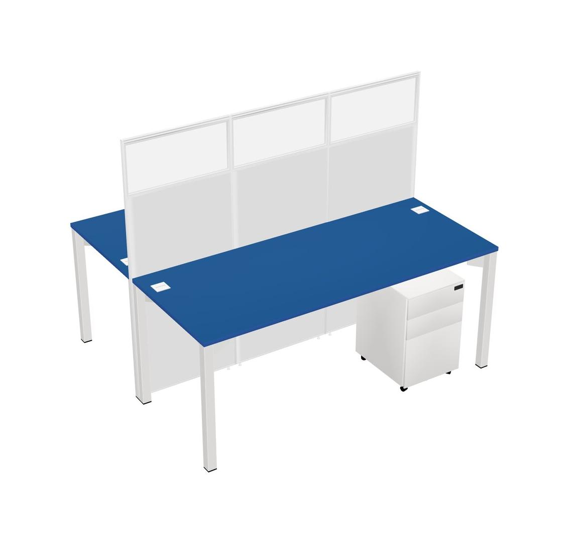 Prism Blue Shared Rectangular Office Cubicle Panel System With Mobile Drawers For 2 Persons