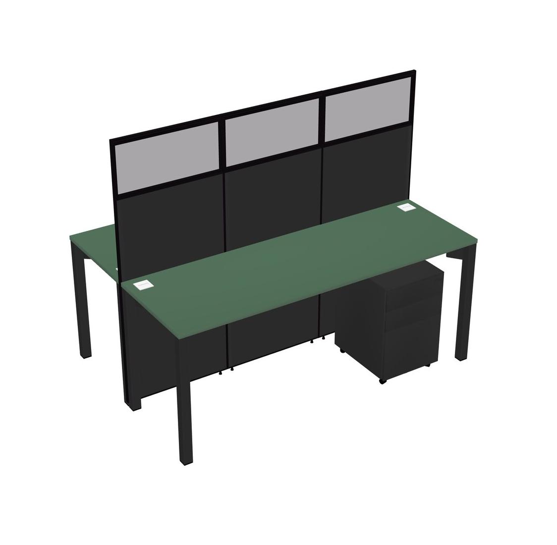 Green Shared Rectangular Office Cubicle Panel System With Mobile Drawers For 2 Persons