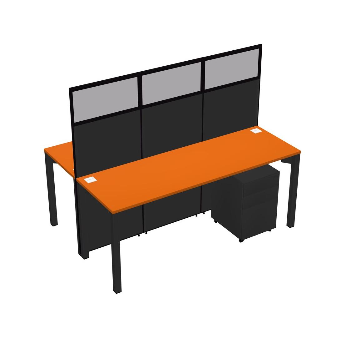 Orange Shared Rectangular Office Cubicle Panel System With Mobile Drawers For 2 Persons