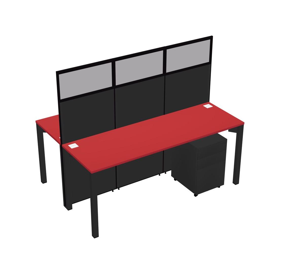 Prism Red Shared Rectangular Office Cubicle Panel System With Mobile Drawers For 2 Persons