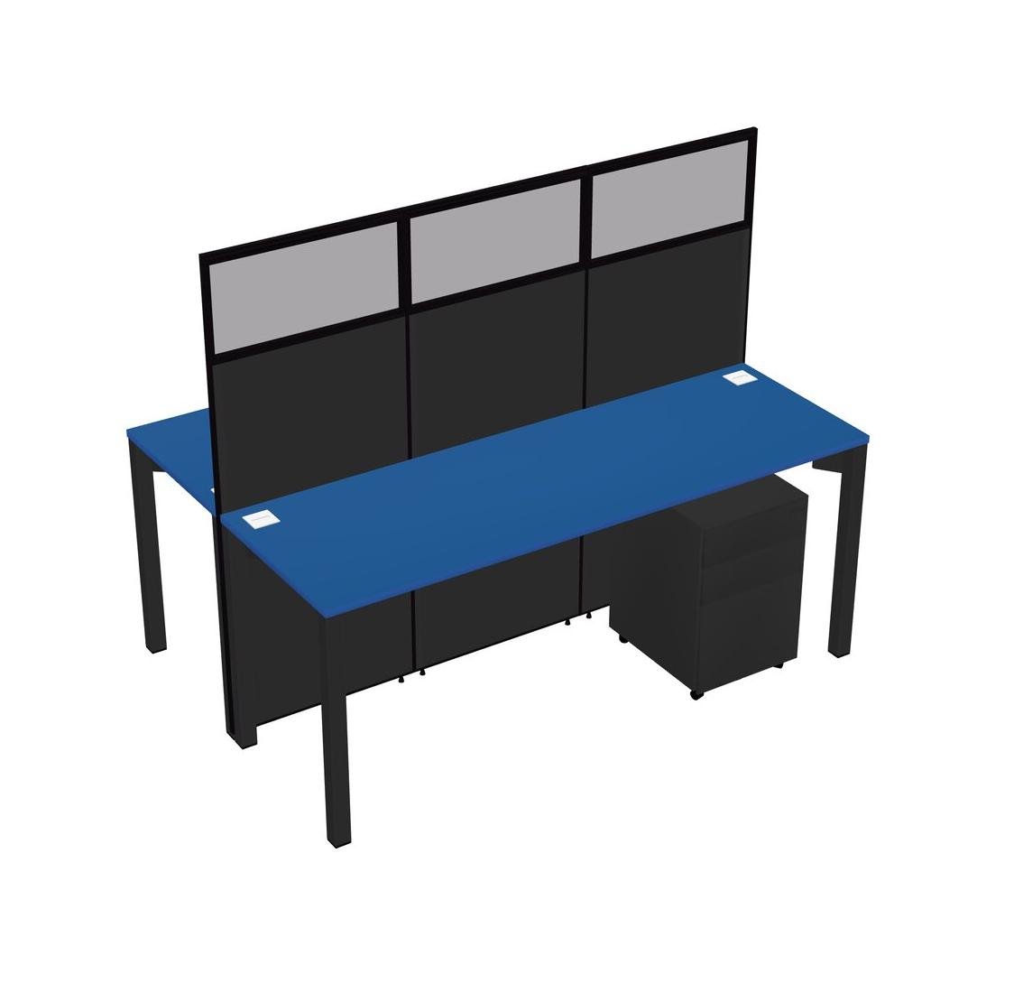 Prism Blue Shared Rectangular Office Cubicle Panel System With Mobile Drawers For 2 Persons