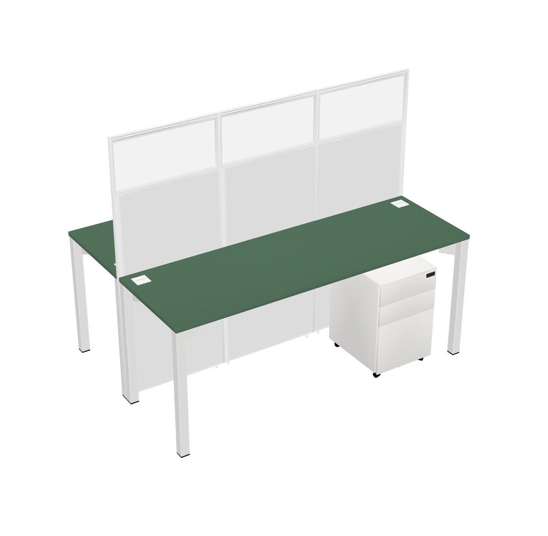 Green Shared Rectangular Office Cubicle Panel System With Mobile Drawers For 2 Persons