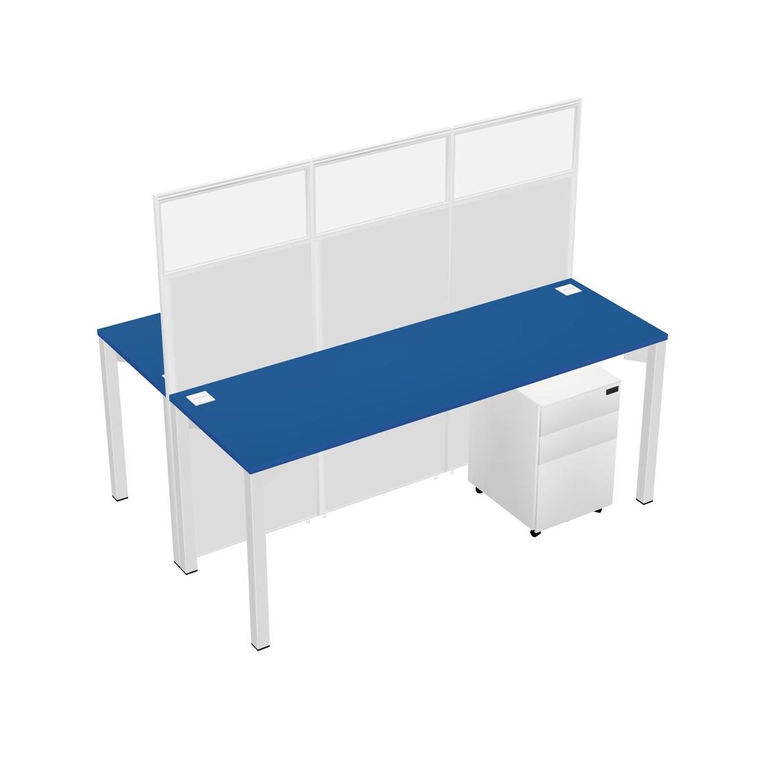 Prism Blue Shared Rectangular Office Cubicle Panel System With Mobile Drawers For 2 Persons