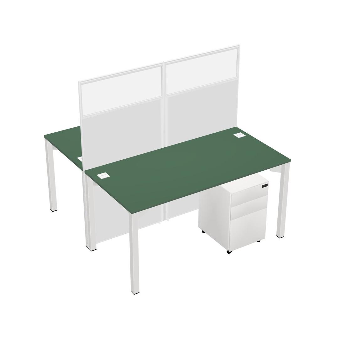 Green Shared Rectangular Office Cubicle Panel System With Mobile Drawers For 2 Persons