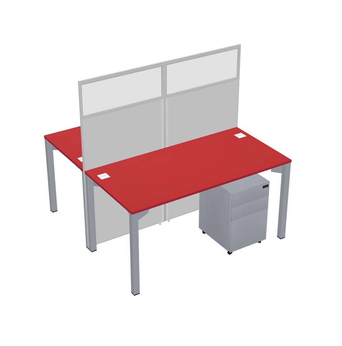 Prism Red Shared Rectangular Office Cubicle Panel System With Mobile Drawers For 2 Persons