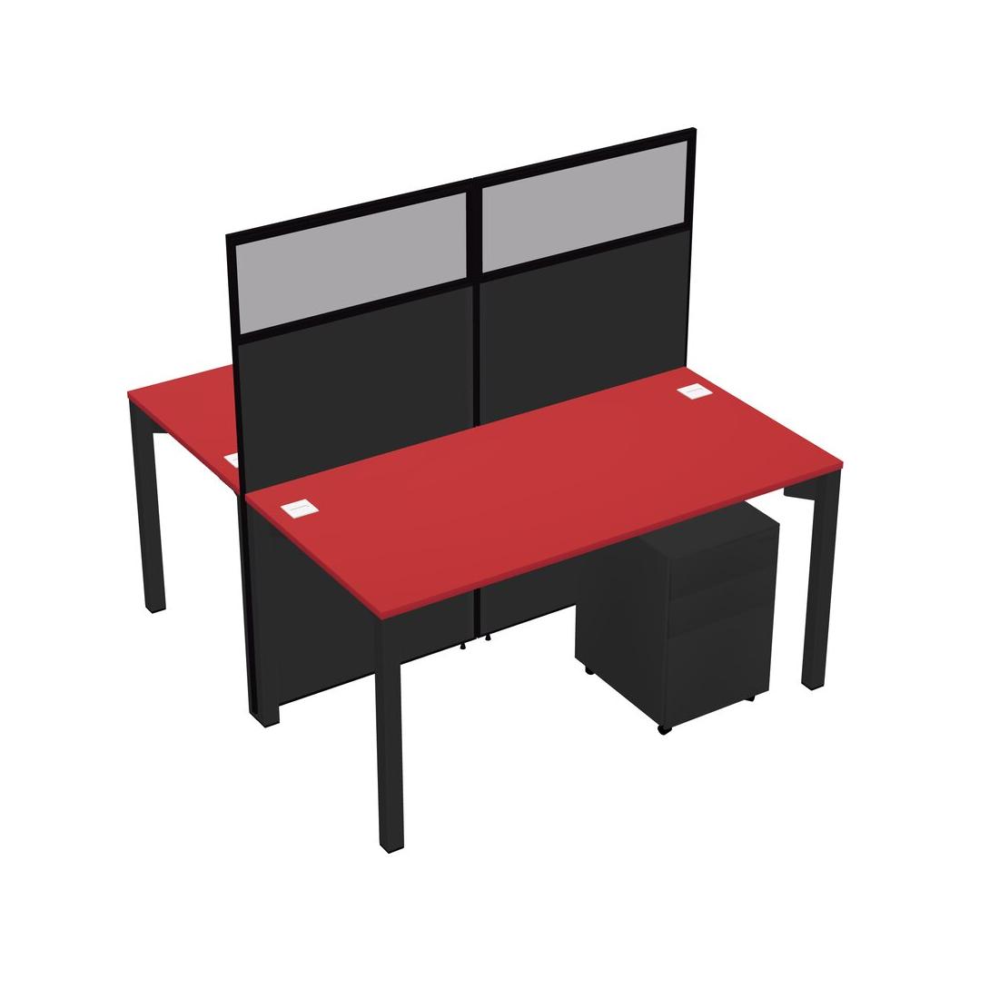 Prism Red Shared Rectangular Office Cubicle Panel System With Mobile Drawers For 2 Persons