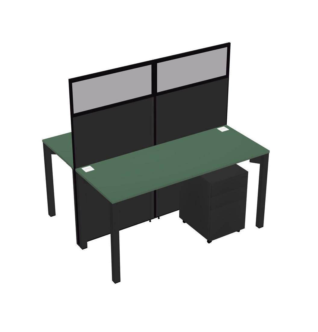 Green Shared Rectangular Office Cubicle Panel System With Mobile Drawers For 2 Persons