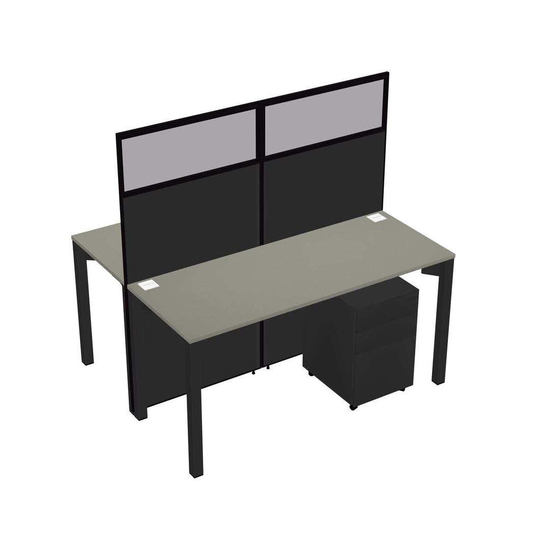 Grey Shadows Shared Rectangular Office Cubicle Panel System With Mobile Drawers For 2 Persons