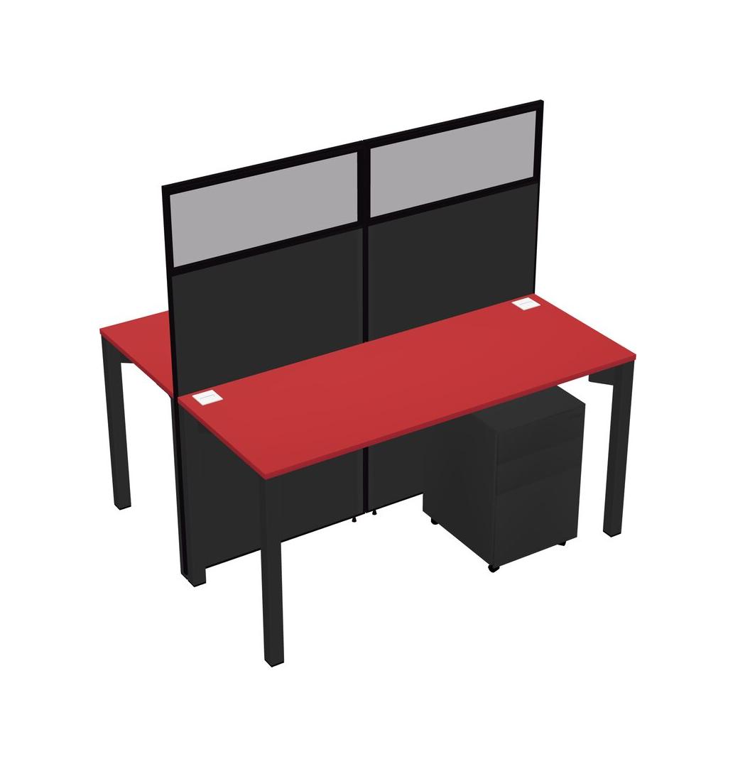 Prism Red Shared Rectangular Office Cubicle Panel System With Mobile Drawers For 2 Persons